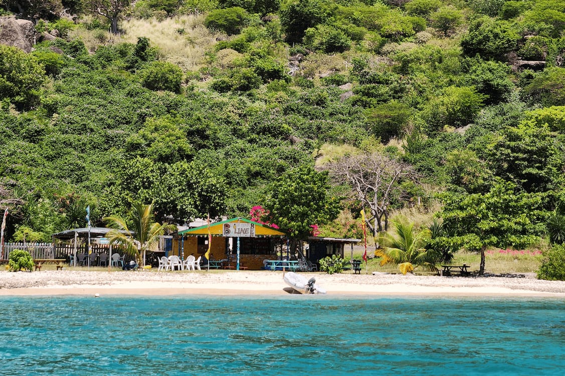 you can also enjoy the quiet local vibe of B Line beach bar and the stunning beaches and crystal clear waters of Sandy Spit and Sandy Cay.